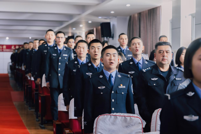 学警们高唱《中国人民警察警歌》。 观影前,新疆司法警官职业学院的学警们,以昂扬之姿高唱《中国人民警察警歌》,声声嘹亮、字字铿锵,既展现了预备警官的赤胆忠诚,也彰显了新时代警校生的使命担当,为本次活动注入了庄严而热血的精神力量。