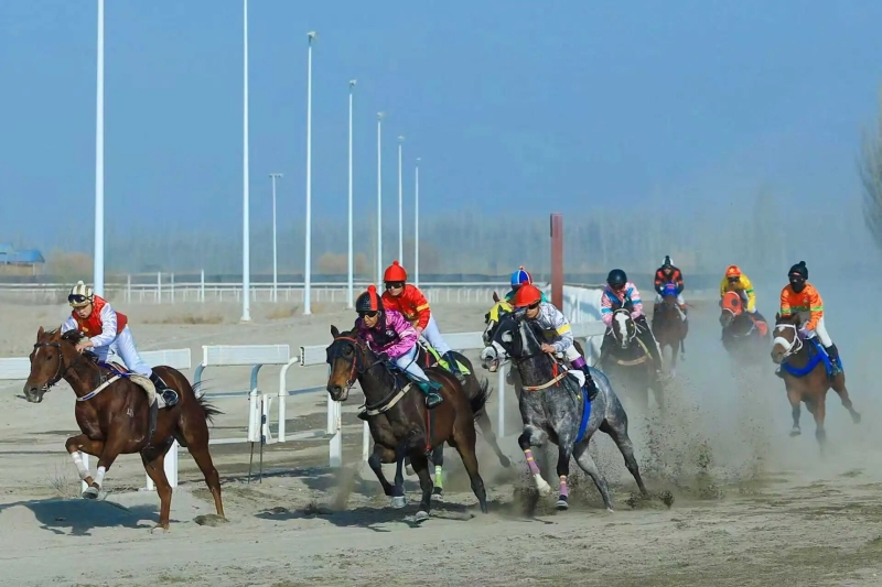 11月22日,“丝路山水 壮美巴州”2025和美乡村·伊犁马性能测试系列赛暨博湖县冬季民间赛马大会在博湖县西海龙马苑开赛。来自全国各地60多支代表队230余名参赛选手携骏马汇聚于此,展开激烈角逐,呈现了一场融合体育竞技与民俗风情的精彩盛宴。