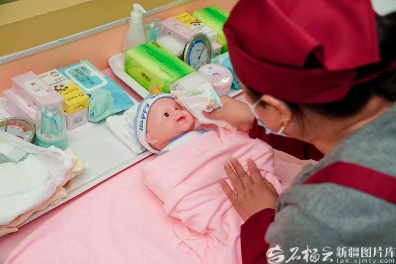 近日,在伊宁市聚盛职业技能培训学校组织的育婴员培训中,学员借助仿真娃娃进行实操训练。伊宁市聚盛职业技能培训学校供图