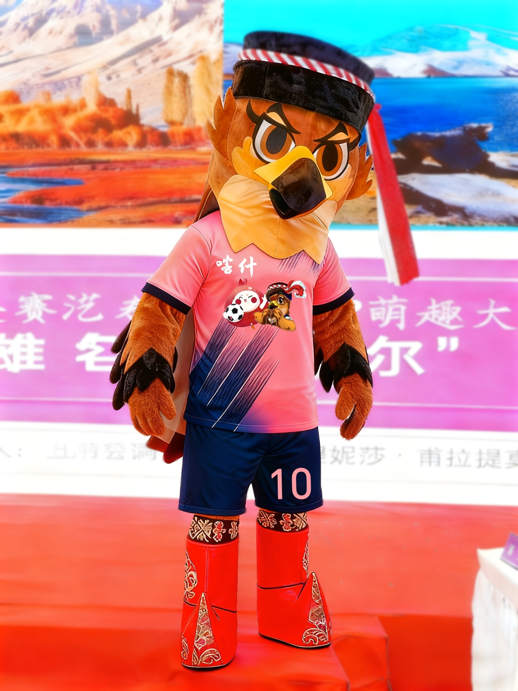 11月13日,上海。中国吉祥物大赛暨在地文创IP萌趣大赛总决赛现场,喀什大学丿禾文创工作室教师百合提妮莎·甫拉提夏身着塔吉克族盛装,带着“帕米尔雄鹰——阿米尔”吉祥物走上颁奖台。这个以鹰为原型、融合塔吉克族传统文化的IP形象,从全国300多个城市参赛作品中脱颖而出,斩获“最具文化传播力”IP之王奖项,并获“中国萌王”称号。