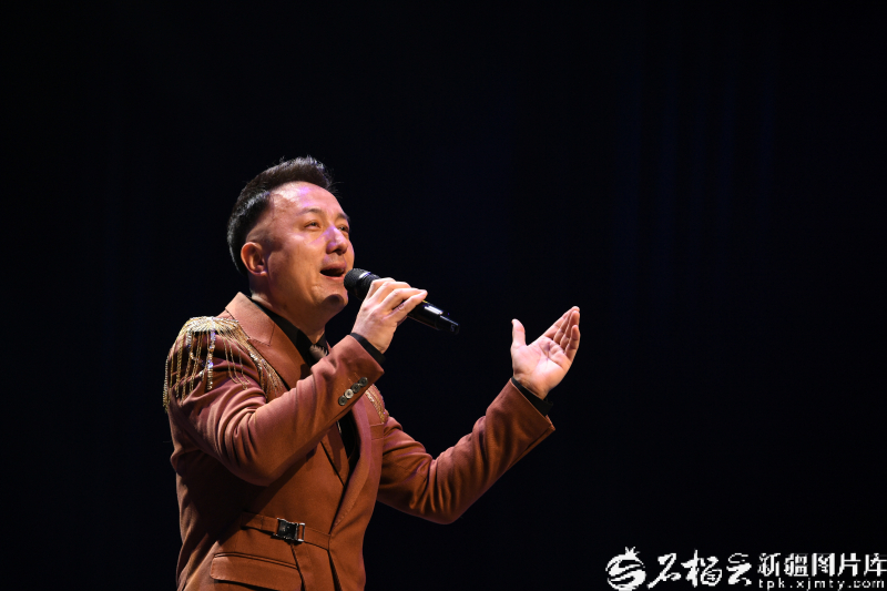 自治区音乐家协会会员、国家二级演员努尔买买提·吾甫深情演唱经典歌曲《怀念战友》。石榴云/新疆日报记者 秦梅花摄