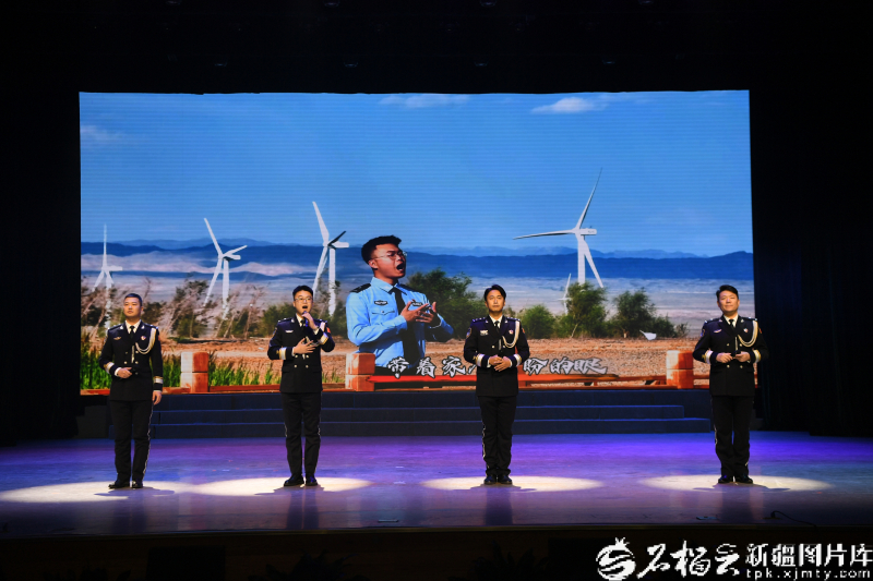 阿拉山口市公安局守护乐队演唱歌曲《平安阿拉山口》。石榴云/新疆日报记者 秦梅花摄