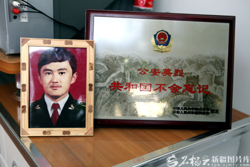 赛尔江不仅英勇无畏,更是一位勤于学习、信念坚定的战士。1989年,他郑重向党组织递交了入党申请书,写道:“我要为共产主义奋斗终身,必要时甘愿为人民付出一切!”而他用生命兑现了誓言。 赛尔江牺牲的噩耗传开后,整个富蕴县陷入悲痛,人们从四面八方赶来送别,沉痛悼念他们心中的英雄。 党和人民没有忘记这位忠诚的卫士。公安部追授他“全国公安系统一级英雄模范”,自治区党委、人民政府追认他为“革命烈士”,并追授“人民的忠诚卫士”荣誉称号。 当时,赛尔江两岁的儿子叶尔兰还不懂“牺牲”的含义,只知道父亲在相框里冲他微笑。懂事后,叶尔兰内心也曾充满酸楚,不禁思忖父亲那一刻是否想到了自己。 叶尔兰不是在儿童故事里认识英雄,而是在真实的牺牲与怀念中,触摸到了英雄的轮廓与温度。父亲的警服、奖章,还有人们提起父亲时那充满敬意的眼神,都让“赛尔江·买米拉”这个名字,从血脉相连的亲人,升华为一座精神的灯塔。 “我要像父亲一样,当一名好警察。”2014年,叶尔兰如愿成为一名人民警察,穿上了和父亲一样象征责任与奉献的警服。他说,从警后我开始理解他,换做是我,也会这么做。这份理解,是血脉的传承,更是精神的共鸣。 “父亲是我一生的榜样。我选择当警察,就是为了继承他的遗志,沿着他的脚印继续走下去,守护好人民群众,就是我对父亲最好的怀念!”叶尔兰说。这份跨越时空的承诺与应答,让赛尔江精神内核铸就的丰碑熠熠生辉。