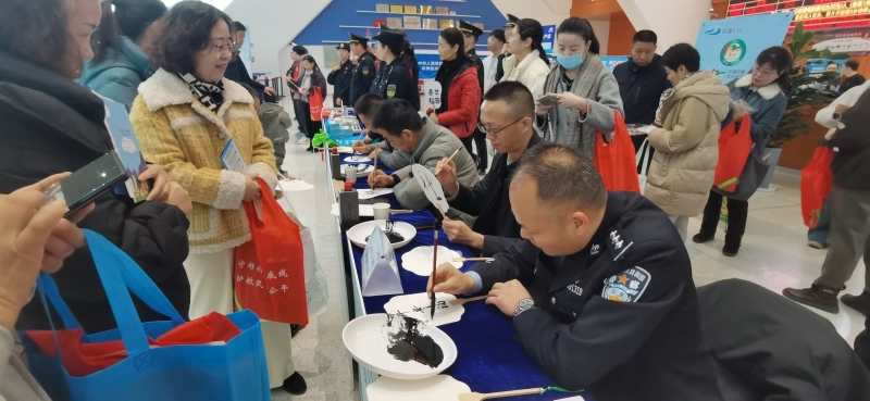 民警题写扇面书法——平安是福。石榴云/新疆法治报记者 郭玉强摄 石榴云/新疆法治报讯(记者 郭玉强 通讯员 李丹报道)11月29日,克拉玛依市道路交通安全生产专业委员会以“文明交通 礼行天下”为主题,在克拉玛依科技馆举办第十四个“全国交通安全日”主题宣传活动。市公安局、市司法局、市应急管理局、市交通运输局、市教育局等相关单位负责人以及交警、学生、外卖快递员、运输企业员工、油田职工、保险公司职员等行业代表共500余人参加主题活动。 活动在情景宣传片《礼行天下道通古今》中开场,通过超时空对话展现交通文明传承;开场舞《文明交通礼行天下》以舞蹈与说唱融合,点燃现场气氛。情景剧《惟愿平安》以社区宣讲为背景,讲述老年人对道路隔离防护栏从抵触到理解并参与宣传的故事,凸显“一老一小”交通安全作用。活动还为“文明交通 礼行天下”主题作品大赛获奖代表颁奖,人保财险向外卖企业赠送了安全头盔。克拉玛依市道路交通安全生产专业委员会副主任、市公安局党委委员、副局长王广宣读《文明交通倡议书》,倡议市民从自身做起,践行文明礼让。