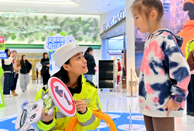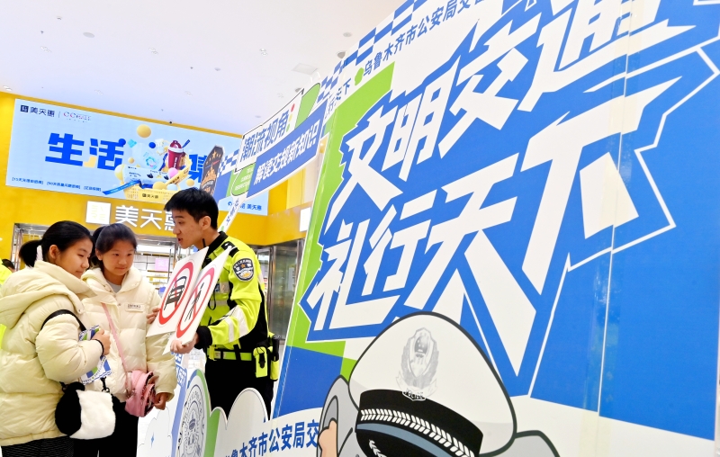 12月1日,乌市公安局交管支队城市快速路大队民警在CCMALL商场,向市民讲解交通标识的含义。石榴云/新疆法治报记者 单坤摄 11月30日,两场主题宣传活动同步开展。当天下午,乌鲁木齐经济技术开发区(头屯河区)大队在经开万达广场,通过趣味知识问答、游戏集章互动等形式,引导市民主动争做交通文明的维护者。高新区(新市区)大队在高新万达广场设立宣传主阵地,民警通过摆放宣传展板、发放宣传资料、现场答疑解惑等方式,向过往群众重点讲解酒驾醉驾、分心驾驶、不按规定让行等交通违法行为的法律后果,同时邀请市民参与“文明交通承诺签名”活动,强化大家的责任意识和自律意识。
