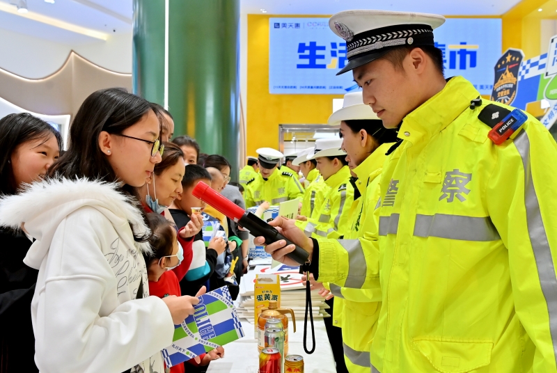 12月1日,乌市公安局交管支队城市快速路大队民警在CCMAL商场,让市民体验呼气式酒精检测。石榴云/新疆法治报记者 单坤摄 11月28日,交通安全宣传活动精准触达校园与文化场所。在乌鲁木齐市第76小学,水磨沟区大队河南路中队民警张惠翔结合学生出行特点,详细讲解过马路、乘车、骑车等日常出行安全注意事项,通过典型案例分析,让学生直观感受交通违法行为的危害。