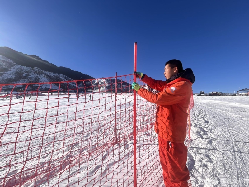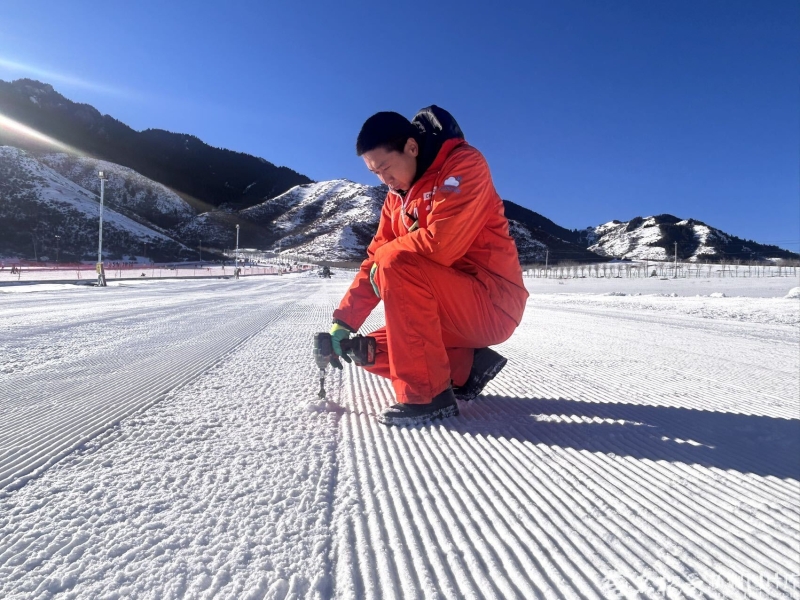 李彦周在检查雪道边的安全网。石榴云/新疆日报记者 张小宓摄 李彦周的家距离滑雪场仅3公里。随着新疆冰雪旅游热持续升温,2017年他成为安全救援人员,越来越多的周边村民和他一样,投身冰雪产业,从农民转型为滑雪教练、安全员、服务人员,在家门口实现了就业增收,成为冰雪旅游热的见证者、参与者、更是受益者。 如今,6人组成的安全救援队,与200名兼任安全巡视员和安全救援员的滑雪教练,在滑雪场党支部统筹下,和全体工作人员共同构筑起一张安全防护网。 11时,阳光洒在雪道上,各色滑雪服的身影交织流动,欢声笑语在冷冽的空气中格外清脆。另一边还未开放的雪道上,一抹橙色的身影格外醒目。压雪机早晨刚压过的雪道上,是雪友们喜欢的“面条雪”,李彦周拿着雪钻在不同的位置探入雪道测试积雪厚度,30厘米左右的厚度是开放的硬标准。“这条初级教学道也达到标准,刚好赶上放雪假的娃娃们来滑。”李彦周说。