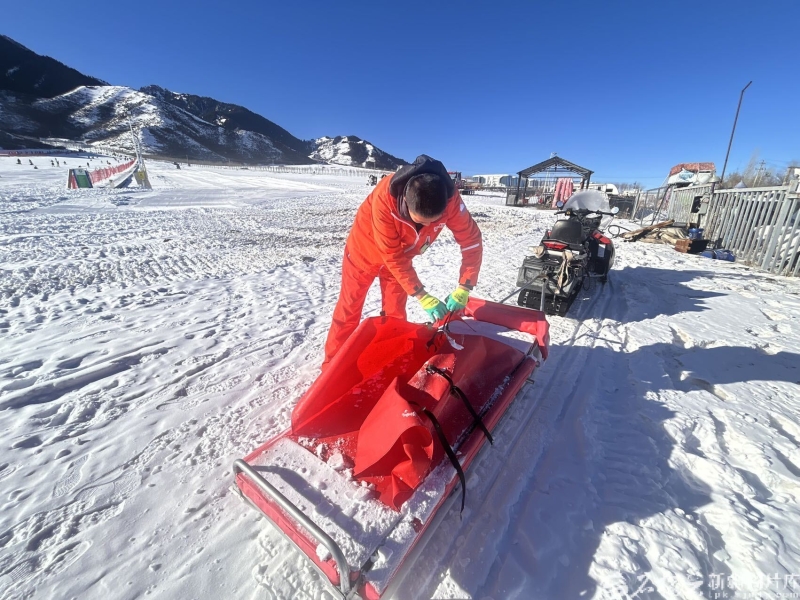 李彦周在整理救援摩托后的救援装备。石榴云/新疆日报记者 张小宓摄 当天,白云滑雪场接待游客超过3000人次。夜幕降临,雪场重归宁静,李彦周和同事们仍在进行最后的巡检。正是无数名和李彦周一样的雪道“守护者”,用无数次转身、提醒、伸手,筑起了一道坚实的“堤坝”,让雪友呼啸而下的畅滑更安心。就像李彦周所说,安全员守护的不仅是一条条雪道,更是每个人对冰雪的热爱与信任。 在这里,安全是所有人的共同语言。李彦周的对讲机里随时传来各岗位的联动信息:滑雪教练滑雪时,会随手拍下需修补的雪面,将位置发在工作群里,保洁员也会轻声提醒未戴头盔的游客……这些看似平凡的瞬间,共同为雪友打造了安全好玩的冰雪世界。 从一条雪道到一个产业,从一个人到一群人,安全的基因已深深融入新疆冰雪经济的血脉。在新疆的滑雪场里,每一位安全员都是“平凡英雄”,他们在寒冬中用专业与奉献,温暖着每一位游客的冰雪之旅。
