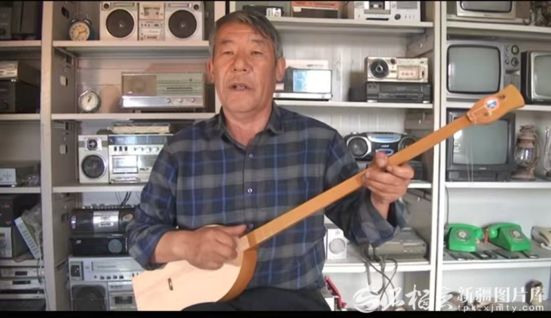 叶尔汗·哈力克最快乐的事情,就是在他的“藏宝屋”里弹唱。本人供图 叶尔汗1989年参军入伍,2001年转业至哈密市伊吾县前山哈萨克族乡工作,此后的20多年里,他将宣传党的政策、弘扬优秀传统文化当作自己一生的事业。 他曾是一个跟着父辈逐水草而居的“放羊娃”,也喜欢阿肯弹唱。“我家住在高山坡,成群的牛羊出圈来……”看着悠然吃草的牛羊,弹起冬不拉,迎风唱起悠扬的牧歌,是他儿时最大的快乐。 进入部队后,叶尔汗仿佛走进一个新世界的大门。他和来自五湖四海的各族官兵一起吃住、训练、学习,了解国家大事、社会动态,这个哈萨克族青年碰触到时代强劲的脉动,感受到生活的丰富多彩。也就是从那时候起,他开始喜欢收集老物件,毛主席像章、爱国主义歌曲唱片、老式电话机……这些带着红色印记、岁月痕迹的老物件,让他探寻到时代深处的记忆,让他的思想有了深度和厚度。 退役来到前山哈萨克族乡工作后,叶尔汗成立了一支阿肯弹唱队,把返乡的大学生、当地的牧民吸纳进来,通过阿肯弹唱这一哈萨克族传统艺术形式,宣传党的惠民政策、民族团结故事。与此同时,他更加痴迷于收集老物件,老式打字机、电影放映机、照相机……越来越多记录着时代进步、生活改善的老物件进入他的生活。 进入新世纪,叶尔汗家迎来历史性的变化——从毡房搬进了安居富民房,结束了居无定所的游牧生活。他喜欢全新的生活:坚实厚重的墙壁,挡住了冬日凌厉的风;水龙头里清亮亮的水似乎永远也流不尽…… 他也看到,定居后的哈萨克族牧民生活发生着翻天覆地的变化:通过学习种棉花、养骆驼等,生活越来越富裕;学校条件越来越好,孩子们不用骑马上学;路越来越宽敞,摩托车、农用车、小汽车等交通工具取代了马匹…… 银质的马鞍子、做酥油的羊皮袋、老式的弓箭……这些退出哈萨克族人生活的老物件,成了叶尔汗的“新宠”。 在乡政府的支持下,叶尔汗办起一个小型博物馆。“每个藏品里都有故事,从它们身上可以看到祖国的发展,时代的进步。”他说。 经常有牧民来参观,看到这些老物件感慨不已。80岁的老党员卡卡夏·努尔哈孜看了他的藏品后泪流满面:“看到这些老物件,就想起过去的苦日子,是共产党让我们过上了现在幸福的生活!” 当地的学校也经常会组织学生来参观。看着这些阳光稚嫩的面庞,叶尔汗会给他们讲述哈萨克族的草原生活,时代的进步发展,教导他们热爱祖国,珍惜现在的幸福生活。 “我们伊吾县前山乡各族人民,歌颂伟大共产党,努力建设新农村,生活富裕我的好家乡”“新疆各族群众过上好日子,我们要感党恩听党话跟党走……”叶尔汗把生活的新变化编进了阿肯弹唱中,也把哈萨克族群众对党和国家的感恩之情编了进去。 冬不拉美妙的旋律,充满情感的唱诵,经常从“藏宝屋”传出来,引得很多人驻足、倾听。叶尔汗还经常带着阿肯弹唱队,走进田间地头,牧场毡房,把党的重大会议精神、各项惠民政策等宣传到每家每户。 眼下,叶尔汗的“藏宝屋”里,冬不拉声又频频响起——他要把党的二十届四中全会精神、自治区成立70周年的发展成就等编进阿肯弹唱曲目,用心用情唱进农牧民的心坎里。