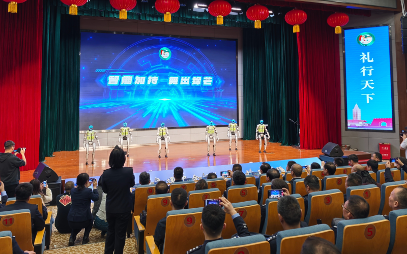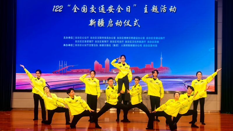 活动现场舞蹈表演。石榴云/新疆法治报记者 郑旭磊摄 精彩纷呈的文艺演出将活动氛围推向高潮。原创歌曲《爱在路上》诠释了新疆交警的使命担当;情景剧《坚守》、音乐剧《天山迎远客·平安伴你行》、舞蹈《路·光·同行》用多样艺术形式生动演绎“安全、文明、和谐”的交通内涵;在小品《双“汪”护平安》中首次亮相的交通安全机器狗引人关注,负重前行、空翻倒立、交通安全知识宣讲,机械与智能深度融合带来的精彩表演让大家领略到新时代新疆公安交管工作的科技活力。现场掌声阵阵、喝彩连连。