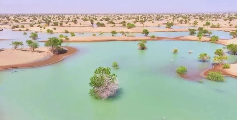 和田县“翡翠湖”(资料图片) 自2000年起,新疆通过水利工程建设与科学调度,已向塔里木河下游进行26次生态输水,累计下泄生态水超100亿立方米。特别是2019年启动的胡杨林拯救行动,通过引洪灌溉,有效恢复了沙漠林草植被。曾经干涸的土地得到滋养,这才在沙漠深处孕育出了如“凤凰岛”这般生机勃勃的生态奇观。(视频、图片由马立新提供)