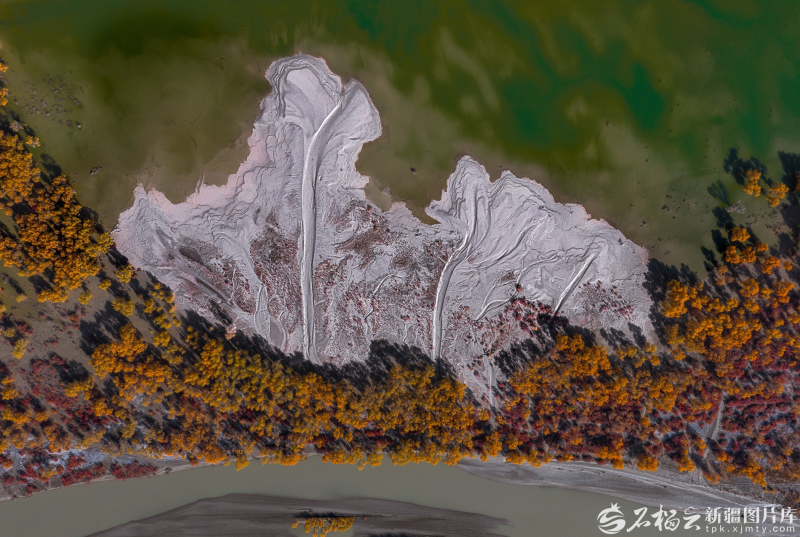 凤凰岛局部 马立新介绍,此处多年前并没见有水,如今“凤凰现世”的奇景,得益于“这几年生态输水的成果。生态越来越好了。”随着塔里木河生态输水、生态引洪工程的实施。类似“楼兰天眼”、和田“翡翠湖”等沙水相依的震撼奇观,在塔克拉玛干沙漠不断涌现。