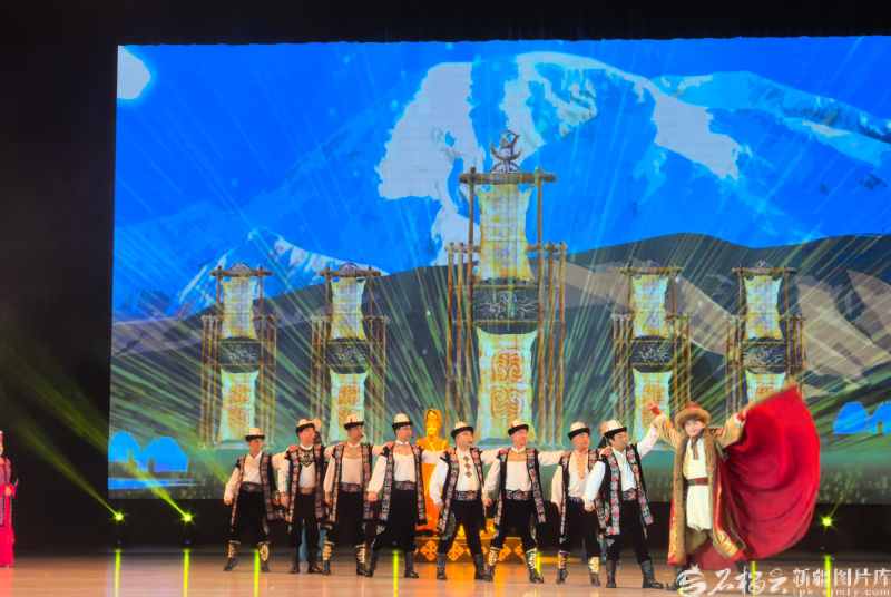 原创歌舞剧《玛纳斯》在新疆大学(博达校区)演出。杨花明摄 该剧对英雄史诗《玛纳斯》进行艺术性转化。剧目通过“诞生”“结盟”“大婚”“远行”四大篇章及“回归”尾声,以歌舞、民族器乐、戏剧表演等多元艺术形式,生动讲述英雄玛纳斯及其子孙守护家园、开拓奋进的历程。艺术化地诠释中华民族精神,展现了各民族的交往交流交融。 演出当晚,恢弘的叙事、精湛的舞美、激昂的库姆孜乐曲与雄浑的唱诵表演,引得现场掌声阵阵,气氛热烈。大学生艾克热木·艾合买提在观看后激动地表示:“之前只在课本上了解到《玛纳斯》是一部史诗,看完演出,感到英雄就在身边,更懂得‘中华民族一家亲’的重量。”