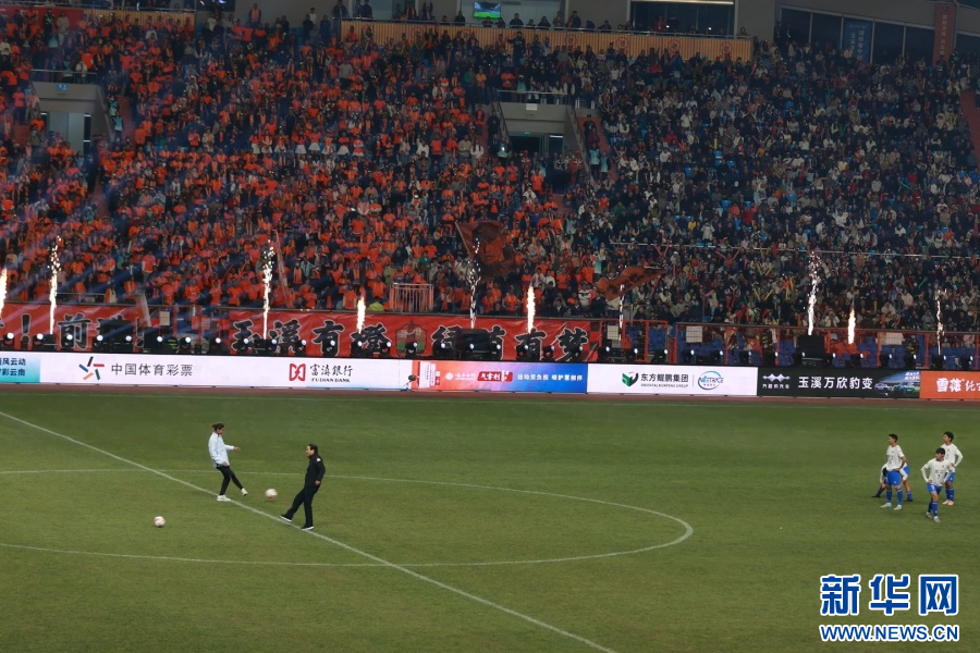 11月29日,2025/2026富滇银行云南省城市足球联赛首战开赛,“滇超”启幕。 “滇超”开球(2025年11月29日摄)。新华网发(杨桢宇 摄) 揭幕战由玉溪市坐镇主场,迎接怒江傈僳族自治州的挑战,这个已在职业足球联赛站稳脚跟的“高原魔鬼主场”,再次因足球成为万众瞩目的焦点。为了迎接这场揭幕战,玉溪市再次搭起舞台,让文化、旅游、产业和赛事运营经验等一一登场,以体育助城的“玉溪样本”,回应全云南的目光。 前夜:赛未开 人已嗨 11月28日,入夜的嶍峨古镇凉意渐浓。在这里的玉溪市非物质文化遗产保护传承体验示范基地,一场云南省城市足球联赛“足韵滇超・非遗焕彩”玉溪揭幕战非遗展演活动点燃了彝乡民众的热情。在汇集昆明市、红河哈尼族彝族自治州、楚雄彝族自治州、德宏傣族景颇族自治州、西双版纳傣族自治州等州(市)的非遗节目、民族歌舞展演之下,民众在广场燃起篝火,欢乐打跳。 嶍峨古镇上的焰火表演(2025年11月28日摄)。新华网发(杨桢宇 摄) 除此之外,当日还有多样非遗主题活动在嶍峨古镇上演。在萃秀书院,非遗代表性传承人现场开讲彝族花鼓舞、“彝族四腔”和“彝族四弦”的传承故事,并通过现场教学让参与者亲身感受峨山彝族自治县“彝族花鼓舞之乡”的独特魅力。在古镇街区,长街宴上的彝族特色美食香气四溢,游客与当地人同吃彝族饭、共唱彝族歌。 长街宴(2025年11月28日摄)。新华网发(杨桢宇 摄) 以“滇超”为契机,峨山县正打造“非遗寻踪·彝乡烟火”主题旅游线路,构建集文创、展演、体验于一体的沉浸式文化街区。 清晨:两座城市的歌舞照面 11月29日清晨,为怒江队应援的怒江球迷团乘专列抵达玉溪。当怒江球迷走出站台,两股热情汇聚,随即化为歌舞。欢快的节奏唤醒了双方的云南“DNA”,现场在打跳声中化为欢乐的海洋。 手提便携音响,泸水市文化馆馆长何仙智通过麦克风引导着怒江球迷跳舞、拍照、合影,作为本次“远征玉溪”的球迷团领队,他表示,本次组织300余人前来玉溪,除了为球队加油,也希望通过足球让两座城市的球迷交流起来,让两座城市的文旅活动有更多互动。 怒江球迷团在玉溪高铁站合影(2025年11月29日摄)。新华网发(杨桢宇 摄) “这里天气很好,人也很热情。”怒江州球迷代表祝熹表示,希望双方球队能展现拼劲,为大家奉献一场精彩的比赛。他说,来的路上已经收到了关于玉溪的旅游攻略小册子,观赛之余可以抽时间去周边感受玉溪的风土人情。 据了解,玉溪市推出“一张球票、全城优惠”的福利,让观赛之旅成为全域畅游的契机。揭幕战期间,玉溪市48家A级景区对客场(怒江)游客免费开放,40余家品质酒店推出延迟退房等暖心服务。 上午:蓄势待发的产业脚步 关于玉溪文旅的小册子也出现在了玉溪市文体旅产业招商暨旅居主题推介会的现场。 这场推介会吸引云南省内外企业110余家、嘉宾120余人,达成签约项目(商务合作)投资额1.47亿元。其中,昆明市文化和旅游局、玉溪市文化和旅游局、普洱市文化和旅游局、西双版纳傣族自治州文化和旅游局共同签署了《中老铁路黄金旅游线战略合作协议书》,推动4州(市)文旅合作迈入协同发展、共建共享的新阶段。基于协议,4方将共拓“中老铁路黄金旅游线”,共筑“滇中-滇南旅居产业带”,共同制定旅居服务标准,并探索旅居基地共建共享。 推介会签约现场(2025年11月29日摄)。新华网发(杨桢宇 摄) 云南省体育局副局长邢晋介绍,2025年,云南玉昆足球俱乐部的案例充分展现了体育赛事对城市发展的综合带动效应。他表示,面对体育产业前所未有的机遇,云南省体育局将在政策、服务、规划等方面全力支撑一批精品项目,推动云南户外体育产业发展。 玉溪市副市长陈静表示,2025年,玉溪市策划了400余场文体项目。“‘滇超’和‘中超’为玉溪带来巨大价值。”陈静说,玉溪将全力打造一流营商环境,以开放的姿态拥抱世界。 赛前:烟火市集里 球迷“跳”在一起 正午阳光热烈,祝熹出现在玉溪高原体育运动中心外围的市集,他带着几名怒江球迷,在市集怒江摊位旁排练起应援的口号。 怒江的市集摊位与玉溪摊位“面对面”。随着市集的人流越来越密集,两个摊位之间也聚集了越来越多的双方球迷。 “高原魔鬼主场”的称号和职业联赛的历练,让玉溪的球迷组织更显强大。目前在玉溪,有8个核心球迷组织、5194名注册会员,他们不仅为云南玉昆的主场比赛“硬核应援”,也会组织球迷团赴客场支持球队。 因此,当他们与客队球迷照面,整齐划一的应援歌曲就在激昂的鼓点中唱了起来。面对“专业球迷”的歌声,怒江球迷则把音响扛在肩上,围着空地打跳起来,并与玉溪球迷一一击掌相庆,将现场化为民族歌舞的海洋。 各地球迷跳在一起(2025年11月29日摄)。新华网发(杨桢宇 摄) “平时都为玉昆加油,今天我要为怒江加油。”一位来自昆明市的球迷表示,等到昆明的主场比赛,他也会支持昆明。他说,“主要还是希望云南足球能越来越好。” 在市集上,有普洱的茶、玉溪的瓷、昭通的肉串……云南各地来客一边不遗余力推介着自己的特产,一边与其他州(市)球迷打成一片。在歌舞与烟火中,热闹的氛围持续,直到夜幕降临。 19时许,2025/2026富滇银行云南省城市足球联赛开幕式在歌声中开启。属于云南人的“滇超”,来了!