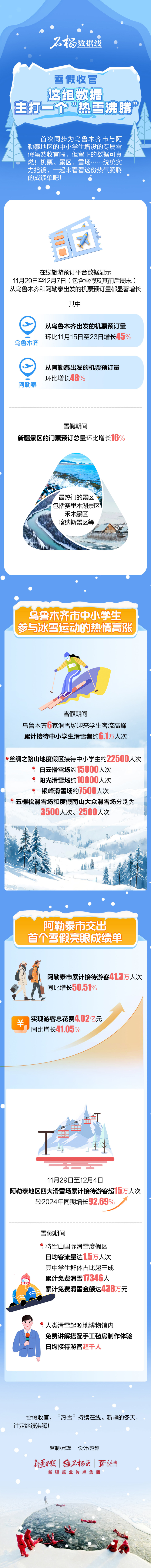 首次同步为乌鲁木齐市与阿勒泰地区的中小学生增设的专属雪假收官啦,但留下的数据可真燃!机票、景区、雪场……统统实力抢镜,一起来看看这份热气腾腾的成绩单吧!