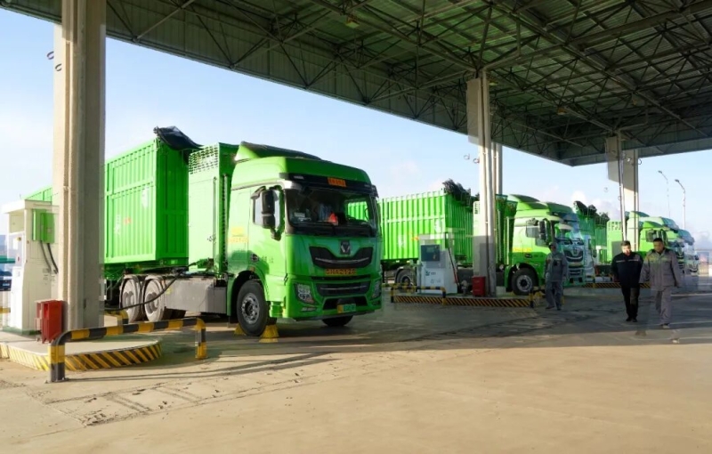 11月6日,中石油新疆销售有限公司运营的首座加氢站。韩青青摄 据了解,该系列公交车一次可加18—25公斤氢,能跑四五百公里,燃烧的是氢,排出来的是水,公共交通的环保性能正逐步增强。 今年12月,在伊吾县淖毛湖镇,哈密易路达物流科技有限公司购置的82辆氢能重卡及其配套重载挂车正式投运,重点服务于当地煤炭和矿产资源运输。这批氢能重卡单次加注氢气量约50公斤,在49吨满载状态下续航里程可达500公里。按单辆年运营10万公里计算,82辆氢能重卡每年预计可减少近10万吨碳排放。