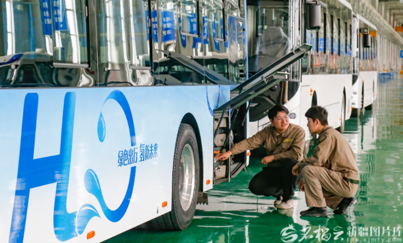 资料图:新疆中通新能源客车主机厂总装车间,工作人员对下线的氢能源客车进行最后的调试。石榴云/新疆日报记者 谢龙摄 氢能产业发展 新疆成潜力股?