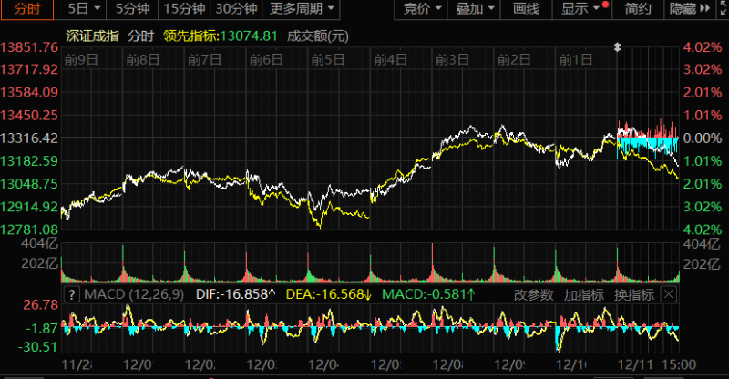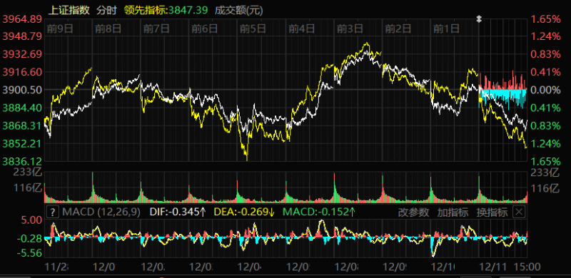 石榴云/新疆日报讯(记者 王永飞报道)A股三大指数今日集体回调,截至收盘,沪指跌0.70%,收报3873.32点;深证成指跌1.27%,收报13147.39点;创业板指跌1.41%,收报3163.67点。沪深两市成交额达到18571亿元,较昨日放量786亿元。 行业板块呈现普跌态势,风电设备、非金属材料板块逆势上涨,房地产服务、房地产开发、商业百货、纺织服装、医药商业、船舶制造、食品饮料、互联网服务、教育板块跌幅居前。 个股方面,上涨股票数量超过1000只,近40只股票涨停。可控核聚变概念股逆势走强,天力复合、哈焊华通、常辅股份涨逾10%,华菱线缆、雪人集团、永鼎股份涨停。 消息面上,近日,多家国际机构密集上调2025年中国经济增速预期。其中,世界银行、国际货币基金组织、亚洲开发银行分别上调0.4、0.2、0.1个百分点。 2025年11月,全国居民消费价格同比上涨0.7%。其中,城市上涨0.7%,农村上涨0.4%;食品价格上涨0.2%,非食品价格上涨0.8%;消费品价格上涨0.6%,服务价格上涨0.7%。1—11月平均,全国居民消费价格与上年同期持平。