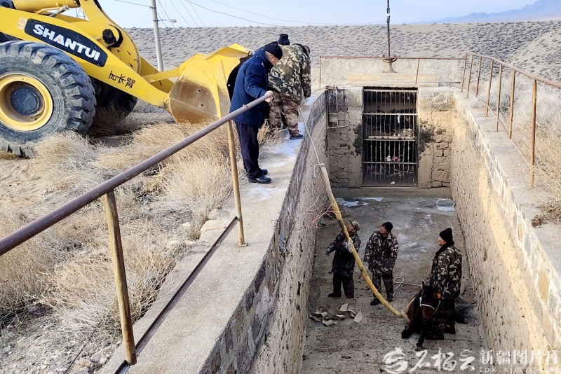 石榴云/新疆日报讯(记者 杨斌报道)12月10日,因受大雾天气影响,一匹马坠入博乐市博尔塔拉河二级水电站区域6米深的滤水池内。博乐市政法委边防委员会办公室民警(博乐市公安局派驻边境巡查民警)在巡逻途中发现它,用铲车将马救出,帮牧民挽回了经济损失。