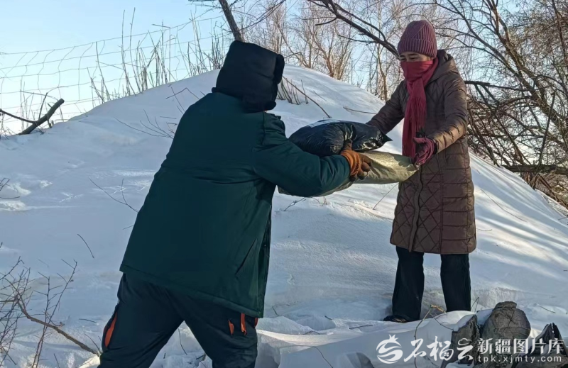 2月20日,阿勒泰市阿苇滩镇的邮政投递员为牧民派送邮件。图/阿勒泰地区邮政分公司提供