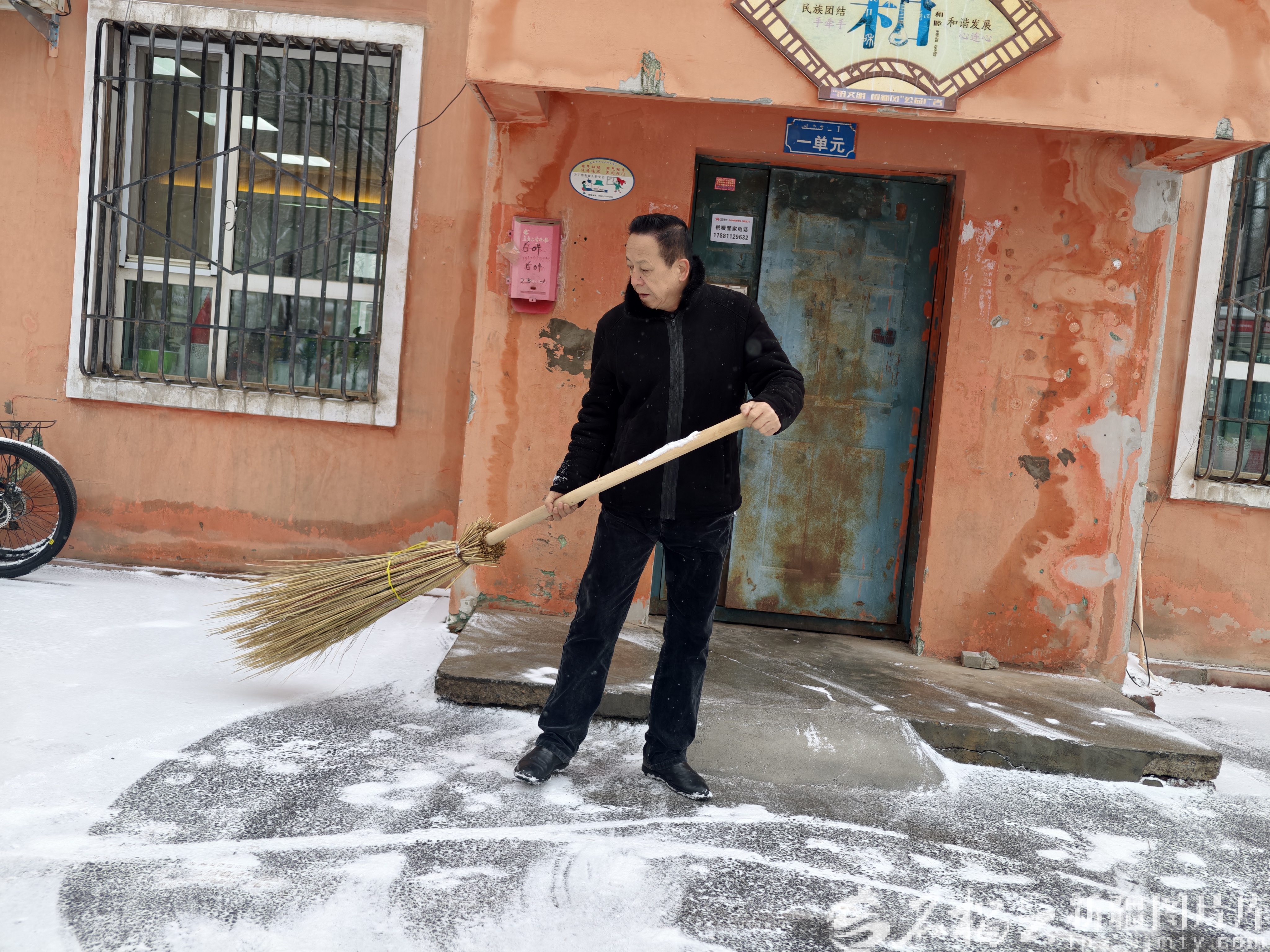 一夜飞雪,给乌鲁木齐市米东区古牧地东路街道振兴社区莲欣苑小区裹上了一层银装。12月18日,晨光熹微,61岁的吾普尔・热合曼已经扛着扫帚、推着铲雪板,出现在了楼栋前的道路上。“雪天路滑,老人孩子出门不安全,得早点扫干净!”他弯腰挥舞扫帚,积雪在脚下簌簌堆积,一条干净通畅的小路顺着他的身影慢慢往前延伸。