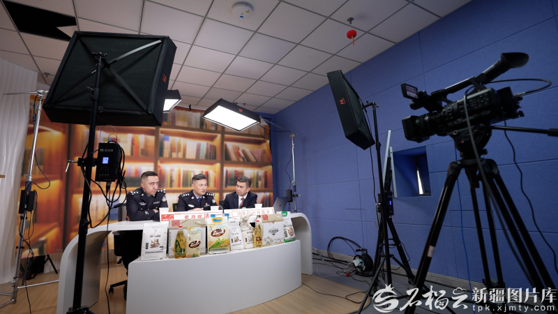 2025年11月28日,马合木提与乌鲁木齐市公安局经侦支队民警开展防范非法集资直播。本人供图