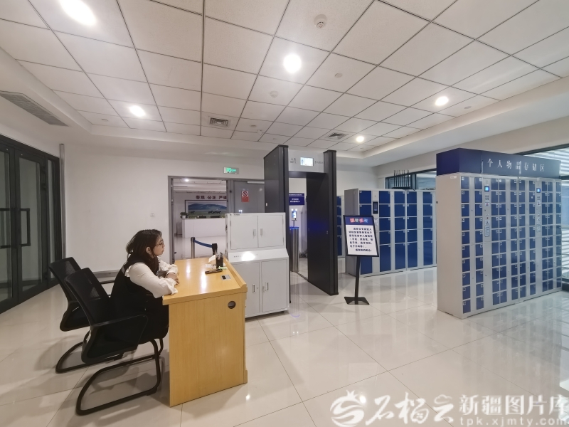 11月22日,在自治区公共资源交易中心评标区门外,工作人员在值守。石榴云/新疆日报记者赵悦摄