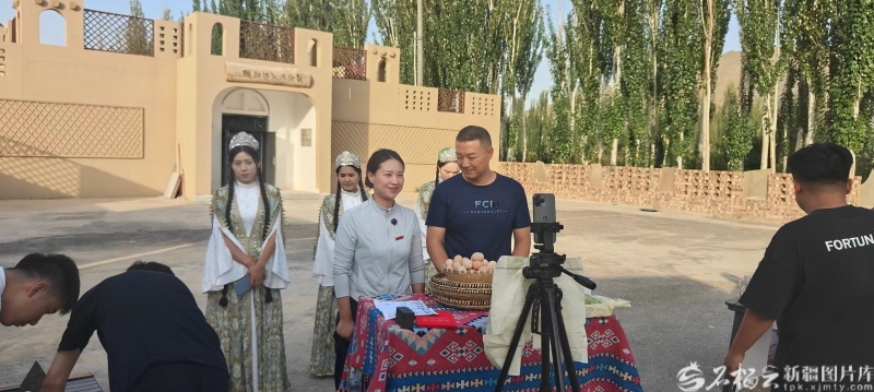 11月15日,柯坪县电商直播活动现场。彭轶博 摄 曾被贴上“穷乡僻壤”标签的柯坪县,2019年底实现全县整体脱贫摘帽后,特色农牧业发展依然是各族群众的“致富钥匙”。这里特色农产品种类丰富,被誉为“骆驼之乡”“岩羊之乡”“黄杏之乡”“恰玛古之乡”“薄皮馕之乡”,近年来,随着当地农业农村现代化步伐加快,入驻的农产品深加工企业和农副产品产量不断增多。怎么做到让好产品走出去?电商销售是突破点。 说到电商销售,柯坪县融媒体中心主任、“精致柯坪”网络主播团队负责人迪丽妮格尔·依明回忆:“柯坪离中心城市较远,产业基础较为薄弱,学习电商直播这样的新事物只能从零开始。2022年3月,我刚牵头成立电商助农工作室、组建直播团队时,大家如饥似渴地学习线上营销技术和理念,但看到直播间里零粉丝、零点赞,我急得头发大把掉。” 从深入田间地头、工厂车间采风到精心制作短视频,从布置展厅、写讲解词到打造主播人设……功夫不负有心人,他们制作的农文旅融合短视频播放量渐渐向100万、300万、500万突破。2023年“双十一”期间,“精致柯坪”主播团队的13位姑娘经过十多天奋战,成功将柯坪羊肉、驼奶粉、薄皮馕、恰玛古等特色农产品推向全国,实现销售额518万元。