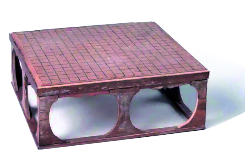 一年后,考古工作者在编号为阿斯塔那206号张雄夫妻合葬墓中又发现了一件保存完好的木制棋盘:边长18厘米、高7厘米,底座设壸门,四周镶嵌象牙边条,盘面纵横各19道线,规整如现代标准棋盘。