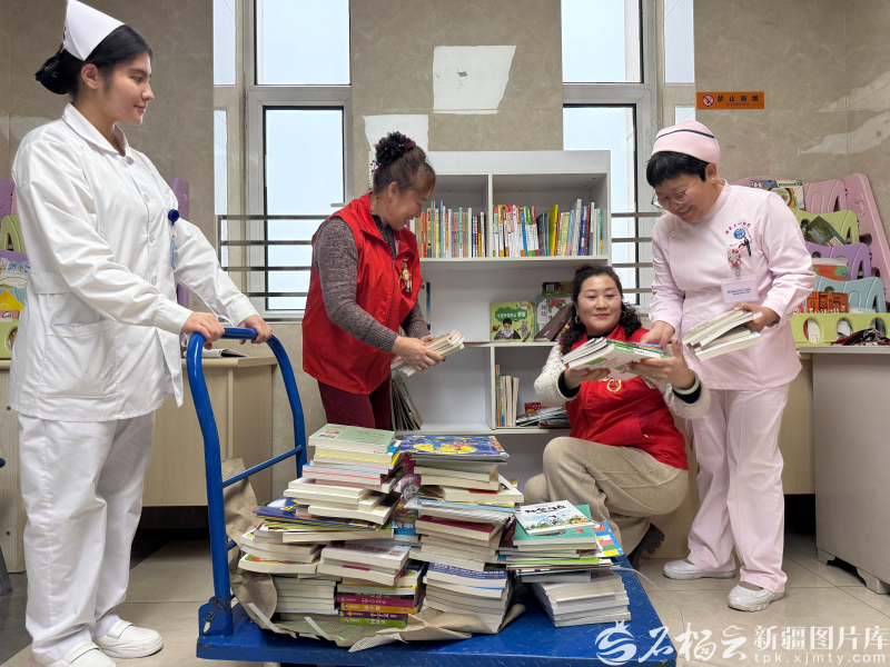 12月24日,志愿者朱红萍(左)和李红梅(右)与护士一起将新书摆在读书架上。 石榴云/新疆日报记者 白素君摄 “我们科室有60名患儿,大部分为白血病和肿瘤患者,这些书籍给他们带来了陪伴与力量。”新疆医科大学第一附属医院儿内一科护士长董树婉欣慰地说,孩子们对图书爱不释手,不少都带回家了,这次及时补货,给小朋友们带来了很多欢乐。 朵朵的妈妈王云告诉记者,女儿已经化疗了7次,住院以来常因治疗感到烦躁,这些新书给孩子增添了乐趣,能在输液时转移病痛的注意力,对康复起到了积极作用。 公益读书角自设立以来,坚持“阅读疗愈”的初心,通过向社会各界募集书籍,为特殊病患群体搭建起温暖的精神港湾。后期,将继续号召社会各界爱心人士和公益团队,定期关注读书角维护情况,持续补充图书资源,让书香浸润病房,为患者减轻心理负担。
