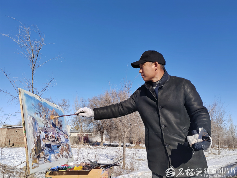 孟二虎在小分子村进行创作。本人供图 “小分子村是我艺术创作的重要基地。每逢周末、假期,我便驱车前往,用画笔记录它的四季更迭与变迁。”新疆艺术学院美术学院绘画系主任孟二虎是首批入驻者之一。他的作品不仅展现村庄风光,更传递着对这片土地的热爱。他还促成新疆艺术学院将小分子村作为实习写生基地,每年组织美术学院数百名学生来此进行为期两周的写生实践,为当地经济发展注入了强劲的动力。2026年元旦,他将在小分子村美术馆举办“不尽的乡愁”个人展览,展出100幅以村庄为主题的艺术作品。 艺术家入驻乡村,带来的变化是深刻而多维的。原中央电视台中文国际频道《走遍中国》栏目执行主编陆镝2019年首次到访时,原计划短暂停留,却最终选择在此建立工作室,成为“新村民”。他通过短视频、文章等形式,持续记录村庄的自然风物、百姓生活和艺术氛围。“文化赋能的核心在于‘赋能于人’,提升人的精神面貌和审美能力。”陆镝说,艺术家帮助村民重新“发现”家乡之美,这种审美觉醒和精神提升,成为推动乡村振兴的内生力量。