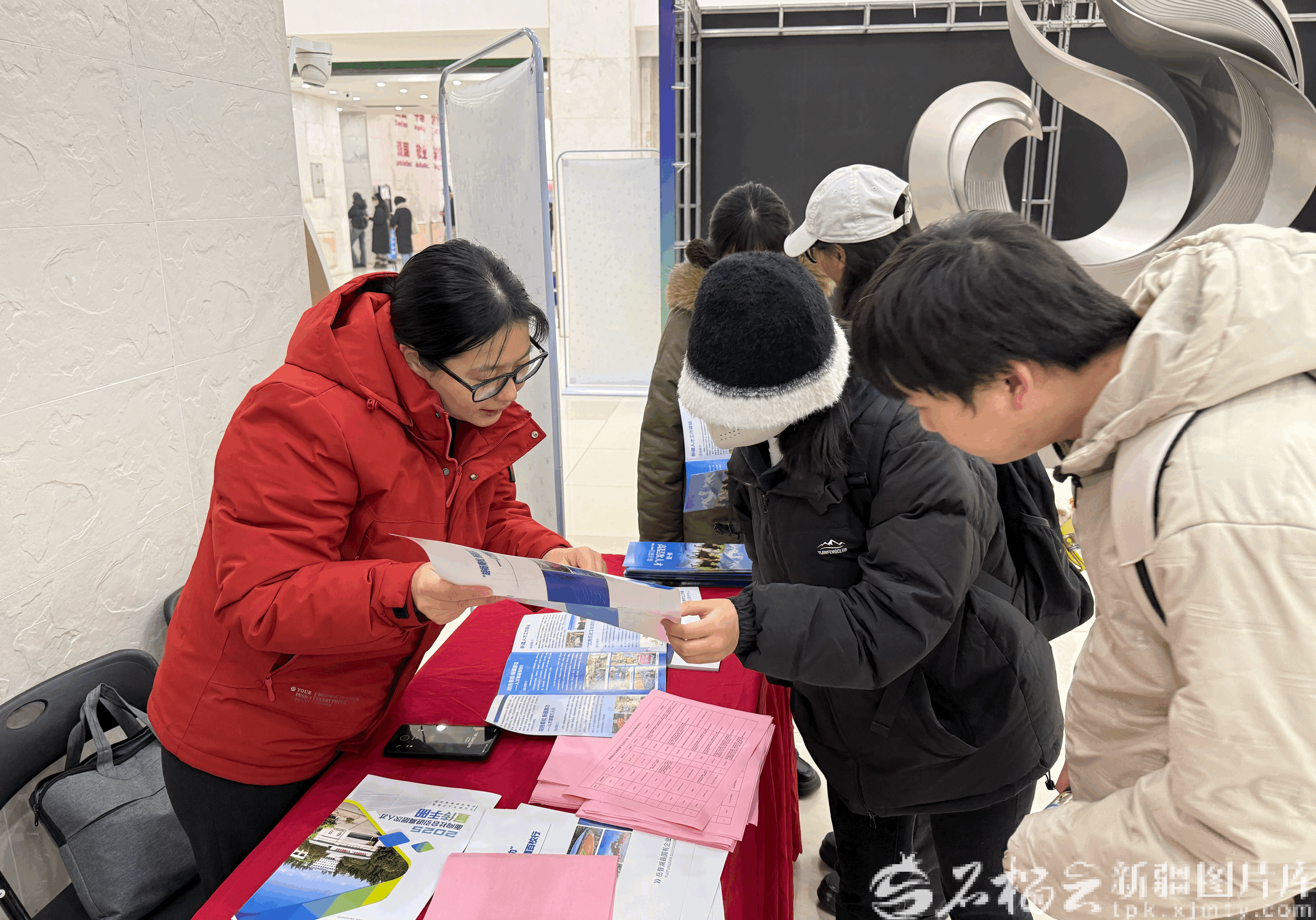 新疆人才集团工作人员赵兰英给问询学生介绍招聘政策。
