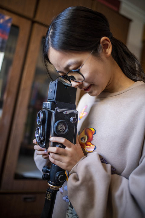 施雨在试用爷爷施作模的相机(1月11日摄)。洱海的美丽景色被24岁的大理女孩施雨收入手机,编成一条条短视频,发在朋友圈,惊艳了远方的朋友。新华社记者 江文耀 摄