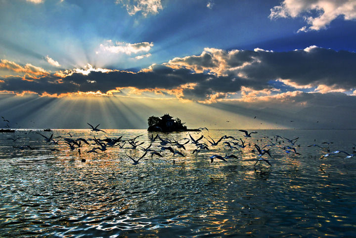施作模儿子施云东拍摄的洱海风光(资料照片)。数十年来,洱海是他投入感情最多的拍摄主题。新华社发