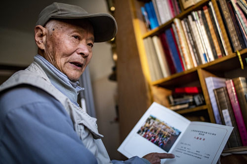 施作模介绍他的作品(1月11日摄)。施作模今年84岁,20多岁学习摄影,20世纪60年代拍摄了首张洱海照片。施作模拍摄的洱海照片超过8000张。新华社记者 江文耀 摄