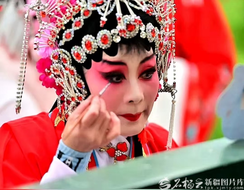 2024年5月12日上午,巴州甘肃商会秦腔剧团在库尔勒市梨香园社区演出,演员在化妆。石榴云/新疆日报记者 王立华摄 “剧团刚成立时,大家条件有限,但劲头十足。”陈宣羽回忆道,为了让剧团稳步发展,甘肃商会投入专项资金,不仅修建了艺韵榴香小剧场作为固定演出阵地,还为演员们添置了精美的戏服、头饰等。剧团坚持每周组织排练,《铡美案》《忠保国》《包公赔情》《花亭相会》《火焰驹》等20多出传统折子戏,被演员们反复打磨,演绎得愈发炉火纯青。值得一提的是,剧团所有演职人员均为义务参与,他们不计报酬,只为心中对秦腔的热爱和对戏迷的承诺。 两年多的打磨与沉淀,让这支民间剧团的专业水平不断提升,所演剧目广受好评。每周六下午,艺韵榴香小剧场都会准时开锣,戏迷从四面八方赶来,在这里享受一场场戏曲盛宴。