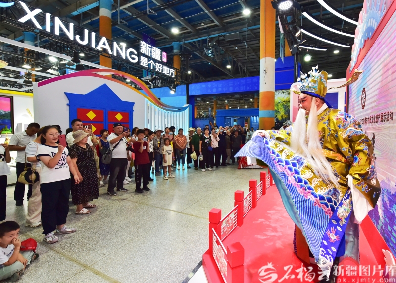 2024年8月22日,巴州甘肃商会秦腔剧团在“新疆是个好地方”对口援疆非物质文化遗产展示活动现场表演秦腔戏。石榴云/新疆日报记者 王立华摄 “两年来,我几乎场场不落,每周末来看秦腔戏,已经成了我生活中最开心的一件事。”戏迷谭培儒说起秦腔剧团,满脸笑意。80多岁的老戏迷张桂兰更是激动不已:“甘肃商会秦腔剧团是我们戏曲爱好者的福音,我不仅能在家门口看戏,偶尔还能上台清唱一段,过足戏瘾,真是太幸福了!” 除了固定的剧场演出,秦腔剧团还主动走出剧场,深入社区、乡镇、农场开展公益巡演。无论是热闹的社区广场,还是偏远的乡村舞台,都留下了他们的身影和唱腔。两年间,100多场演出,不仅让秦腔艺术走进了千家万户,更用乡音乡情温暖了无数人的心。