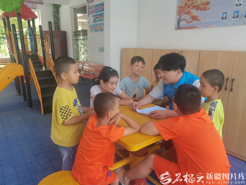 “红色物业”工作人员在社区托幼服务点,陪伴孩子们一起做游戏。王华贤摄