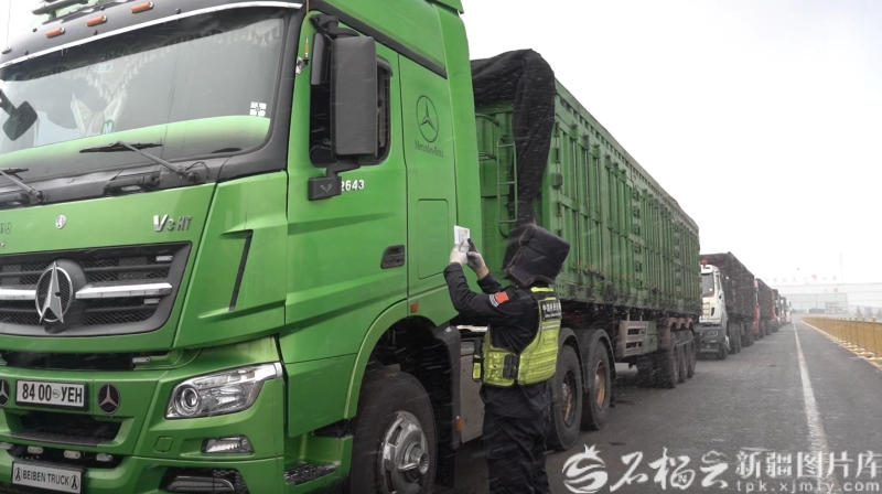 清晨,国门还未打开,在塔克什肯口岸出境缓冲区,大批满载货物的重型卡车已经在排队等待通关查验。新疆出入境边防检查总站塔克什肯出入境边防检查站执勤民警穿梭于货车之间,使用专用设备严查细验每一辆货车。“通关查验不能有丝毫放松,要确保车辆即到即查。”该站执勤三队队长吴哲赟提醒同事说。