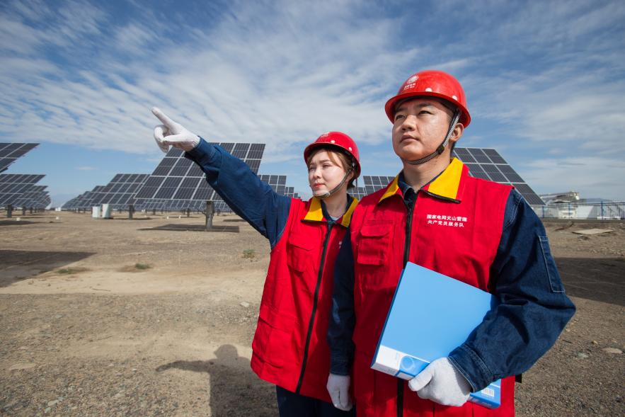 公司党员服务队赴光伏发电厂开展工作。陈建军 摄 目前,哈密电网已建成“两交两直”电力外送通道,建成2个千万千瓦级风电基地、4个百万千瓦级光伏基地,外送能力2000万千瓦,其中“十四五”期间新增电源装机2831万千瓦,新增新能源装机2324万千瓦,形成了“新能源为主、多元电源协同互补”的电源结构体系。 技术赋能 筑牢电网安全防线 戈壁地区极端天气多发、生态环境脆弱,加之新能源发电固有的间歇性、波动性特征,高比例新能源并网对电网安全稳定运行提出了严峻挑战。哈密公司在能源项目建设中始终坚持技术创新引领,通过构网型储能、智能调度、高效输电等关键技术应用,为大规模新能源消纳提供了技术支撑。