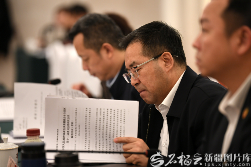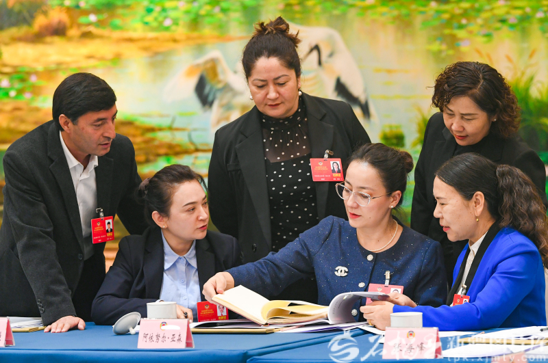 1月29日,共青团和青联、总工会、妇联、台联、侨联、对外友好界委员分组讨论政府工作报告、自治区“十五五”规划纲要草案、两院工作报告等。委员们认真聆听其他委员发言。石榴云/新疆日报记者 秦梅花摄