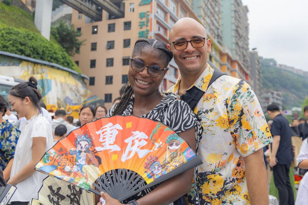 2025年哈尔滨亚冬会开幕式上,剪纸、冰灯、采冰、手绢花舞等深植于黑土地的文化符号和民俗元素,通过科技与艺术的现代演绎和创新表达,以活态传承的方式跃上世界舞台。  △2025年10月,重庆渝中,加拿大游客在李子坝游玩。