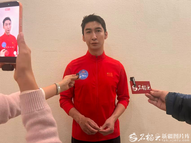 平昌冬奥会短道速滑男子500米冠军、北京冬奥会短道速滑2000米混合接力冠军武大靖接受采访现场。石榴云/新疆日报记者 阿比拜摄 “这么多全国青少年能聚在一起,一定会碰撞出不一样的火花。”武大靖表示,体育的价值超越竞技本身,更能塑造品格、照亮内心。他期待青少年在冰雪运动中寻获热爱、确立梦想,并在尝试与挑战中凝结真挚友谊。 说起新疆,武大靖表示这里是他与队伍屡次集训备战的“福地”,也是青少年冰雪运动的“沃土”。“新疆拥有亚高原的独特训练环境、完善的保障体系,更有令人沉醉的自然风光、深厚文化与特色美食。”他说,新疆拥有“自然禀赋与政策支持”的双重优势,未来必将为冰雪后备人才培养开辟新的赛道。“关键在给予孩子们更多参与机会,让兴趣引领成长。参与广泛,则人才自现。我希望新疆各族冰雪少年能坚持所爱,踏实向前,梦想终会照亮现实。”