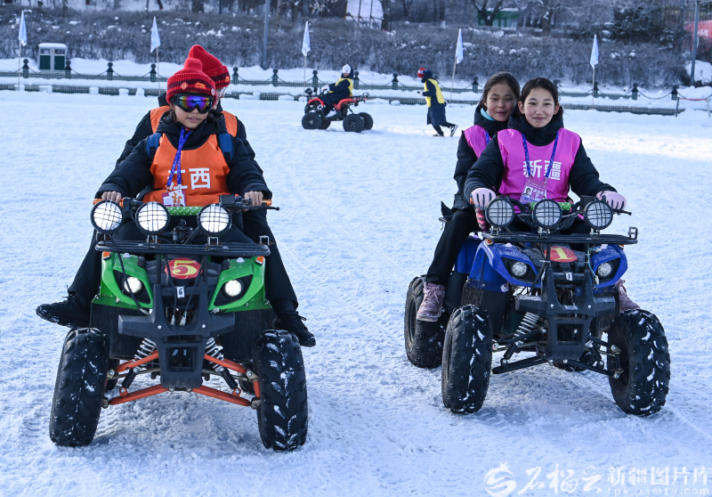 1月30日,南湖市民广场“玩冰乐雪”体验活动现场,广西代表团队员和新疆代表团队员在体验雪地摩托车。 本次大会以“淡化名次奖牌、突出趣味体验”为导向,打造出低门槛、高参与度的冰雪互动场景。冰雪场上,青少年们尽情撒欢、释放活力,在欢声笑语中感受冰雪运动的独特魅力,尽享冬日玩雪的美好时光。