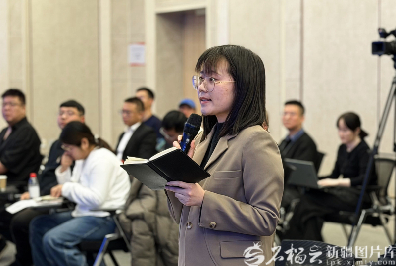 1月29日,2026新疆两会第四场新闻发布会在新疆两会新闻中心举行。石榴云/新疆日报记者在新闻发布会现场提问。石榴云/新疆日报记者 李瑞摄