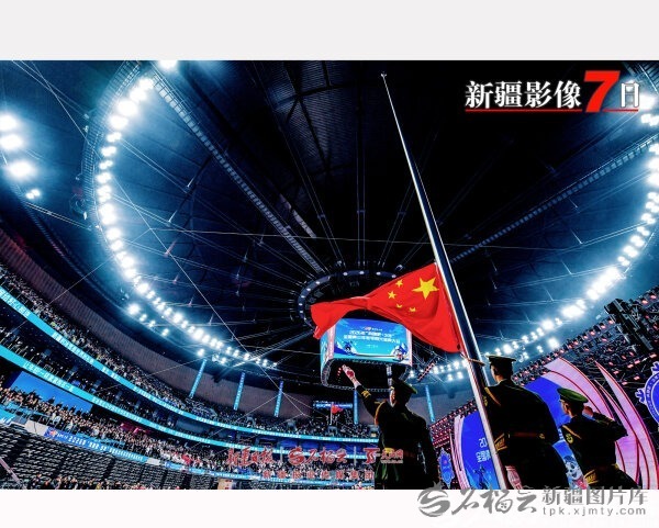 1月29日晚,2026年“奔跑吧·少年”全国青少年冬季阳光体育大会在乌鲁木齐奥林匹克体育中心盛大开幕。图为旗手在开幕式上升国旗。石榴云/新疆日报记者 周鹏摄 南湖嬉雪