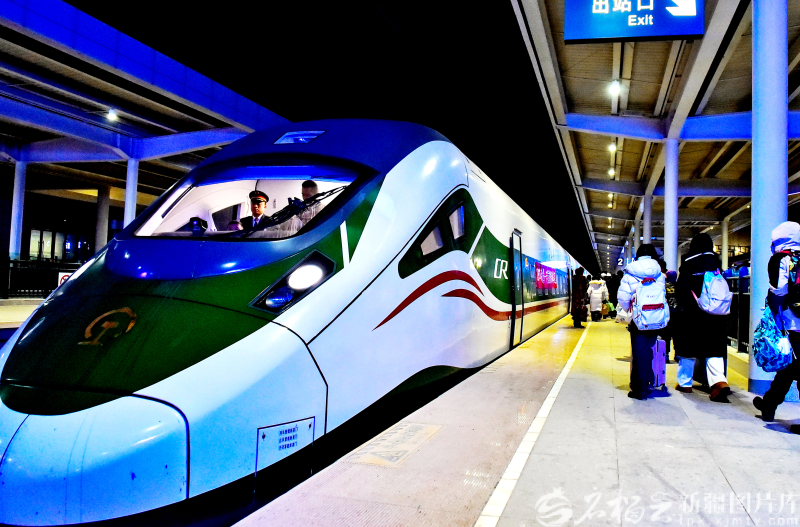1月26日,C982次“复兴号”动车组缓缓驶离库尔勒站,朝着若羌方向疾驰而去。这是库尔勒与若羌两地首次实现动车贯通开行,若羌县正式接入新疆动车网络。图为旅客有序上车。石榴云/新疆日报记者 王立华摄 群贤建言