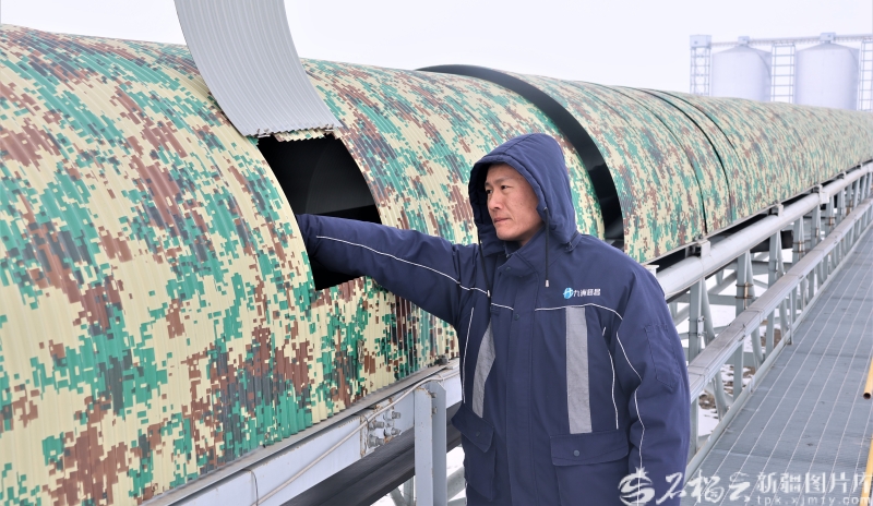 2月1日,在位于呼图壁县石梯子哈萨克族乡的呼图壁县输煤廊道现场,呼图壁县九洲恒昌供应链管理有限公司巡检员在查看输煤廊道运行情况。程勇摄