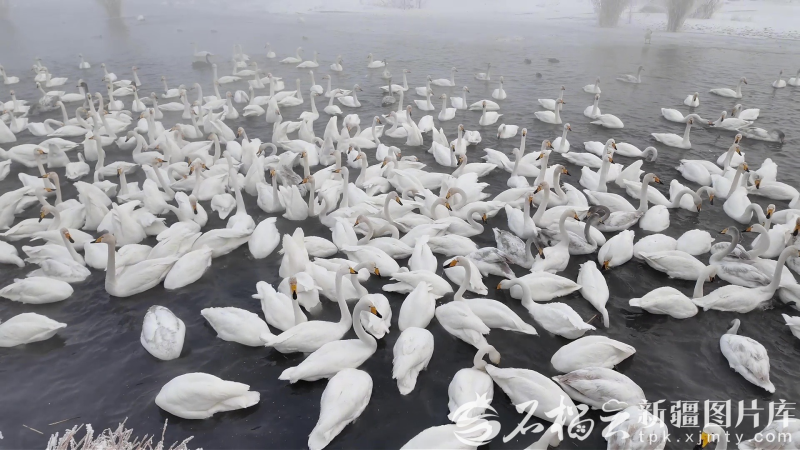 冬季的玛纳斯国家湿地公园吸引了700余只大天鹅“安家落户”。玛纳斯县融媒体中心供图