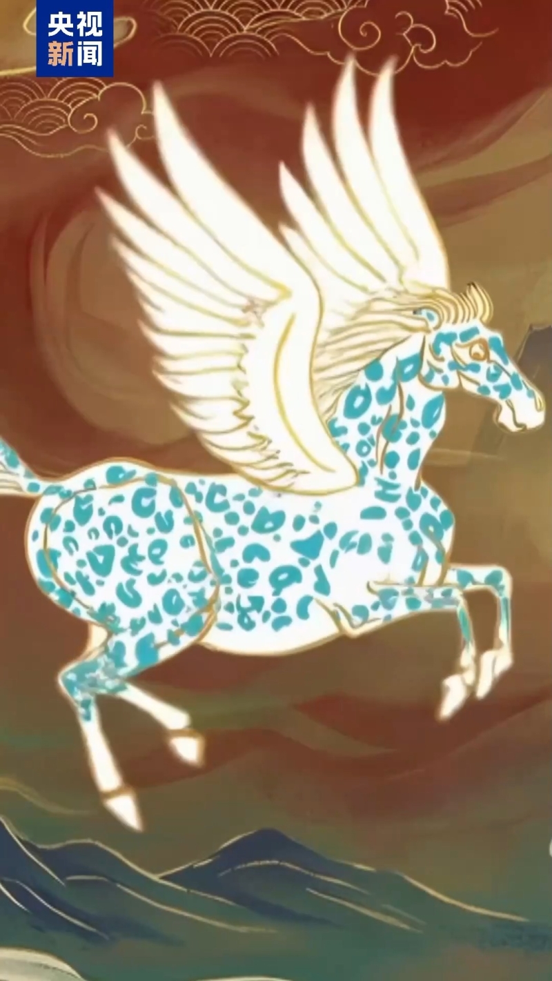 在敦煌莫高窟的诸多唐代壁画中,翼马并不罕有。但是这种带有独特花纹的翼马,尚属首次发现。